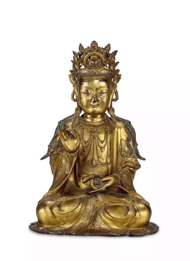 明中期 铜鎏金观音像