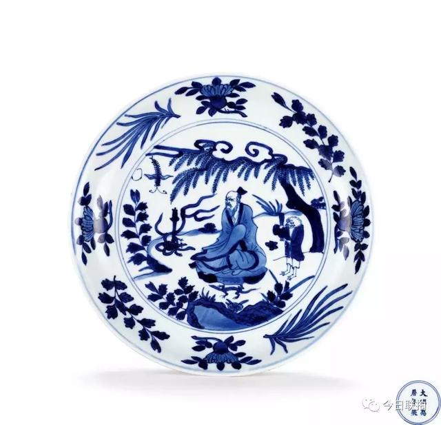 明万历 青花仙人五毒纹盘