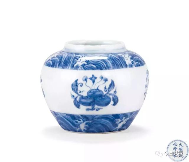 明成化 青花海水折枝花果纹小罐