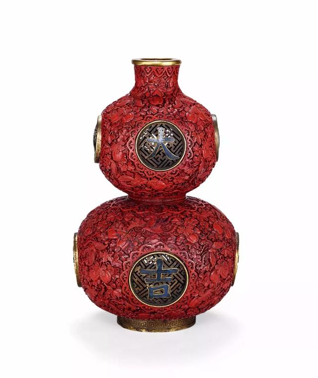 清 剔红嵌珐琅大吉葫芦瓶