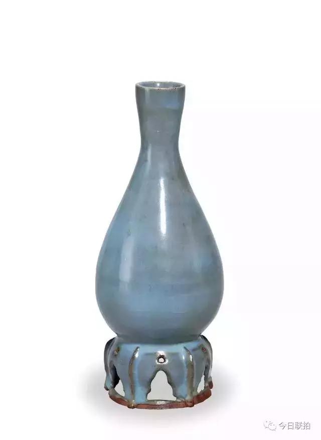 金 钧窑青釉连座胆瓶