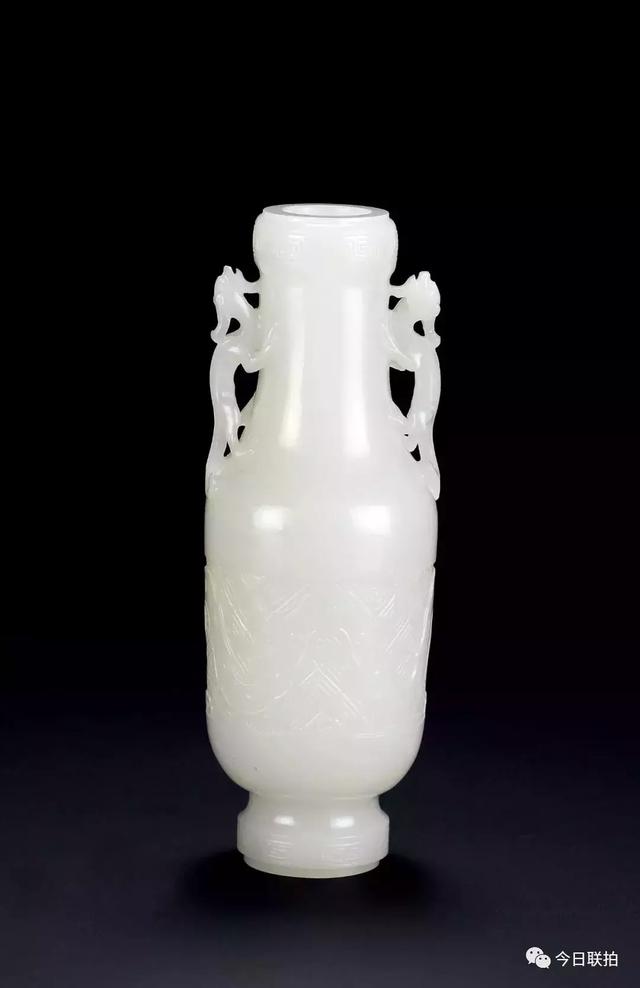 清乾隆 白玉雕双螭耳瓶