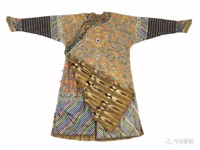 在装饰艺术作品中,值得关注的拍品包括两件皇家长袍:一件19世纪末的刺绣黄缎龙袍 (Lot 80) 和一件镶有毛皮的红色长袍 (Lot 77)。