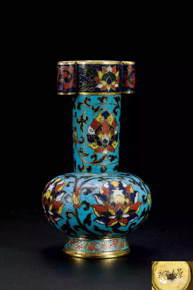 明 铜胎掐丝珐琅缠枝莲纹贯耳瓶