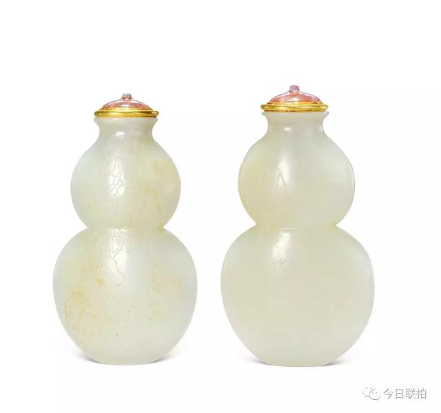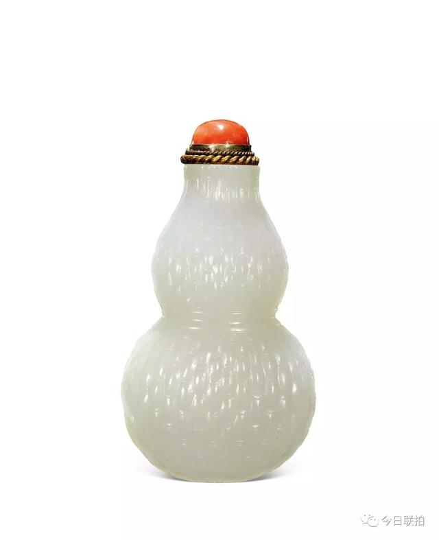 清乾隆 白玉拨划御题诗牡丹纹葫芦形鼻烟壶