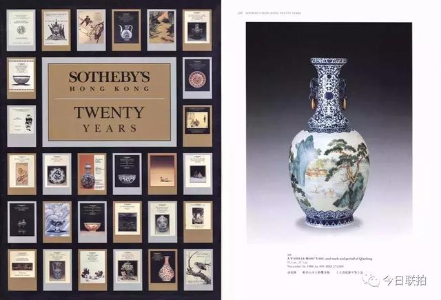 这件乾隆 御制青花夹洋彩通景“桃花源”图双耳活环大瓶的另吸睛之处在于它的著录:《苏富比二十周年精品录》和《明清瓷器鉴定》,一本来自于最经典的市场精华,一本来自于故宫瓷器鉴定泰斗,展现了市场和学术对于这件重器的双重高度认可。