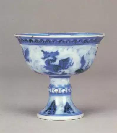 明宣德青花海怪纹高足杯