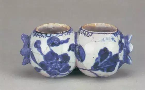 明宣德青花石榴形双联鸟食罐
