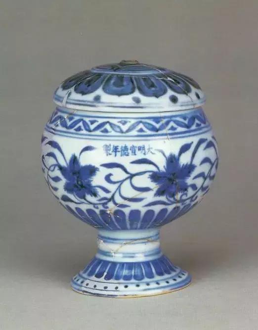 明宣德青花花卉纹盖豆