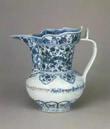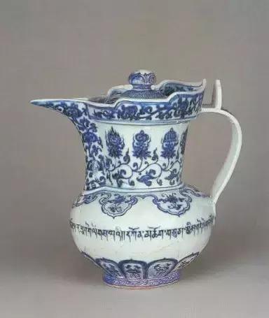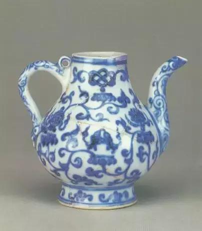明宣德青花莲托八宝纹纹僧帽壶