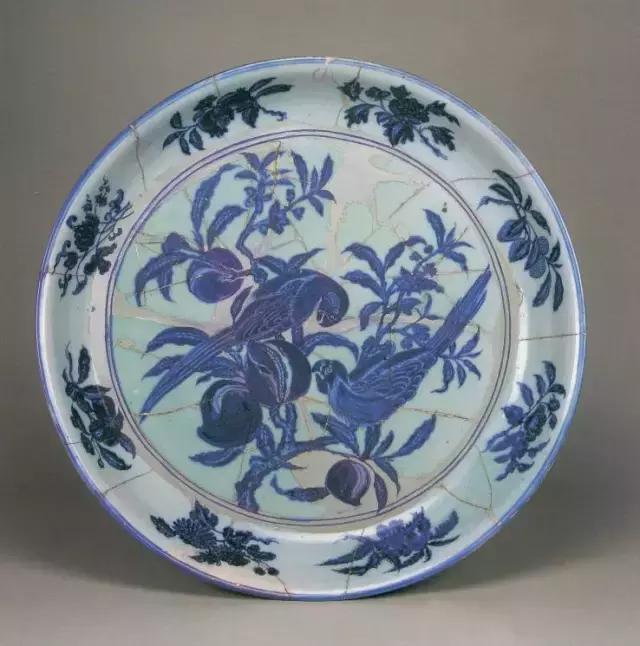 明宣德青花鹦鹉寿桃纹大盘