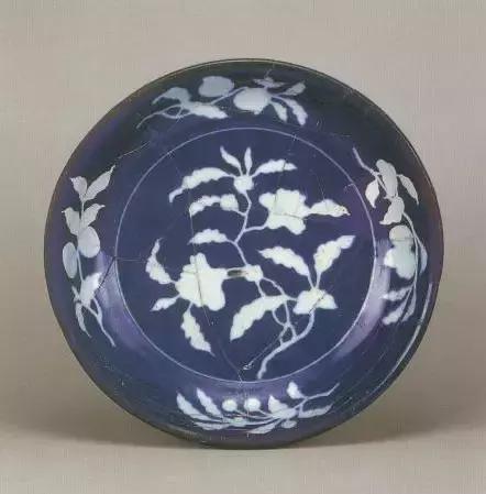 明宣德蓝地白石榴花纹盘