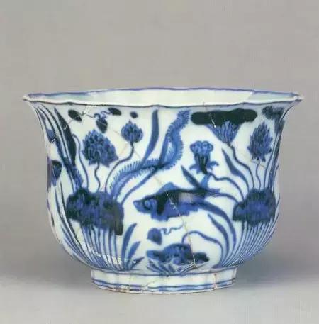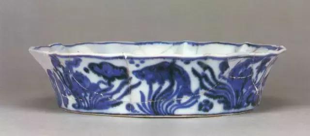 明宣德青花鱼藻纹花口洗