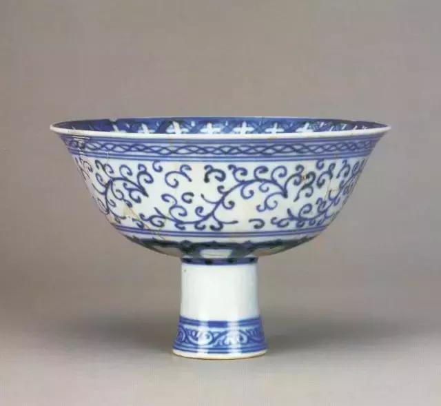 明宣德青花卷草纹高足碗
