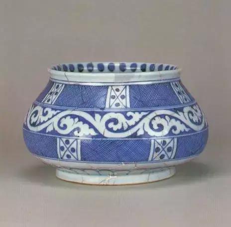 明宣德青花网格纹鼓腹钵(罐)