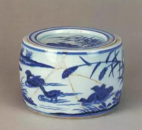 明宣德青花汀洲鸳鸯纹蟋蟀罐