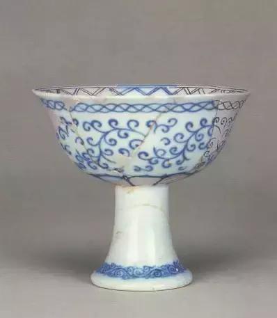 明宣德青花卷草纹高足杯