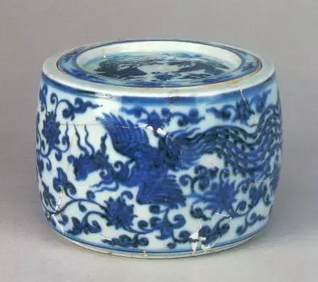 明宣德青花凤穿花纹蟋蟀罐