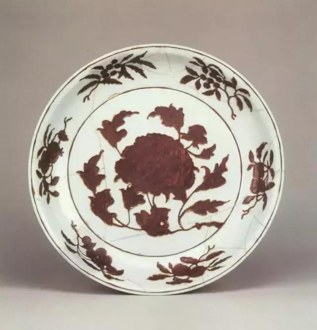 明宣德釉里红牡丹纹盘