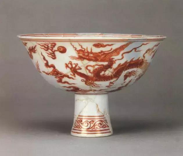 明宣德釉里红龙纹高足碗