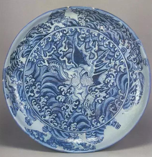 明宣德青花海怪纹大盘