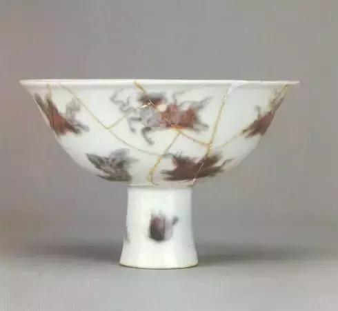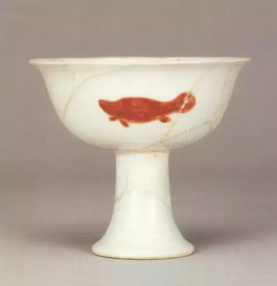 明宣德釉里红海怪纹高足碗