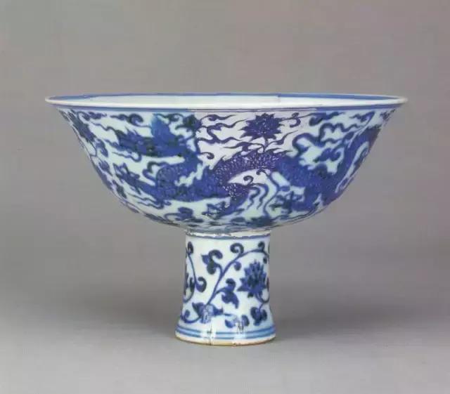 明宣德青花龙穿花纹高足碗