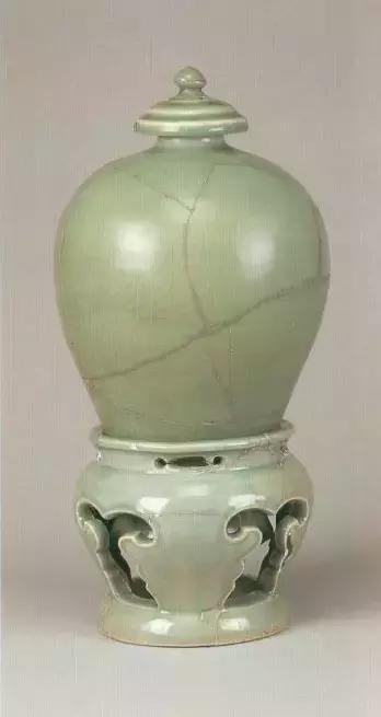明宣德青釉带座梅瓶