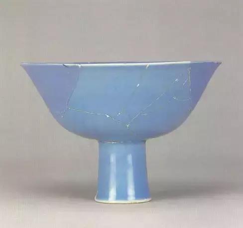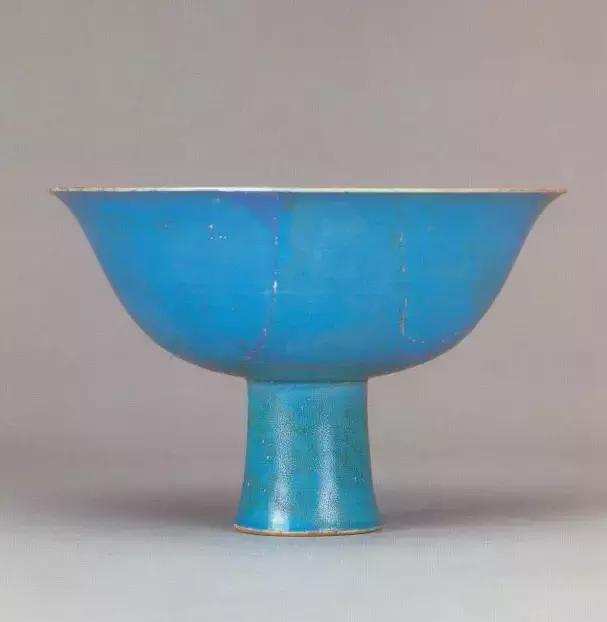 明宣德天青釉高足碗