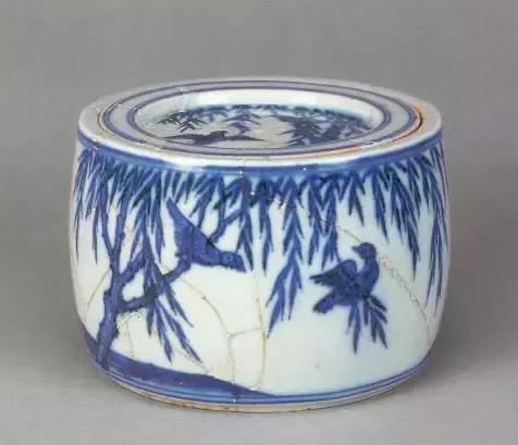 明宣德青花白鹭黄鹂纹蟋蟀罐