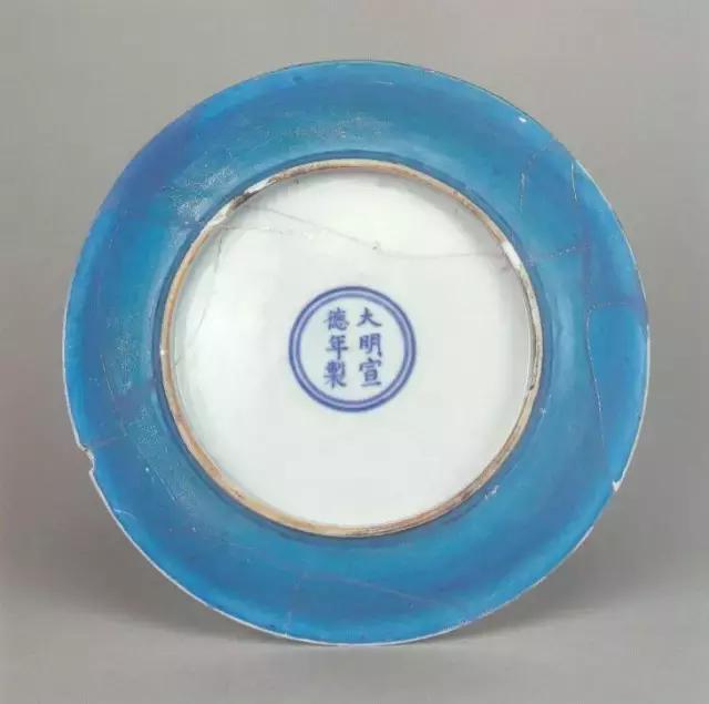 明宣德孔雀绿釉盘