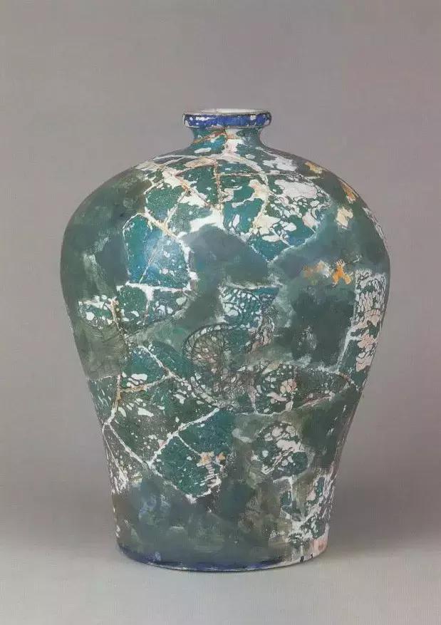 明宣德瓜皮绿釉刻龙纹梅瓶