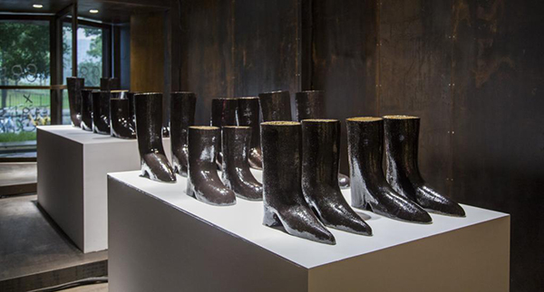 “我觉得这也是他艺术的魅力所在:把熟悉的东西变陌生,把陌生的东西变熟悉。”龚彦接着说道。大卫·史瑞格里乐于“描述那些不需要被描述的东西”,比如,在展览会上出现的“展览会”霓虹灯、墙上的一个名为“黑点”的大黑点以及名为靴子的几双陶瓷靴子。通过这些创作,大卫对艺术本身的既有定义发出了诘问。