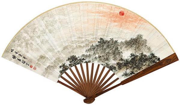 旅日画家傅益瑶的父亲是中国画大师傅抱石,笔下多有巨制,而此次傅益瑶在上海的展览却另辟蹊径,无论是40件扇面、20把“文人壶”,还是5本册页,都是以小取胜。其中一件扇面新作《旭日东升》,是傅益瑶第一次在扇面上向父亲的经典名作致敬。傅抱石先生曾说,国画不能“污”,不能“俗”,能“躁”。傅益瑶回忆他父亲调制的“傅家红”,像少女一样,很沉静,不“躁”,用了胭脂、朱磦加上墨色,“当年很多人会来跟父亲讨教‘傅家红’的秘诀。父亲还说,早霞的红,用色要轻;晚霞的红,用色要浓,太阳的颜色其实很淡,但是周围一衬托就显出来了。”