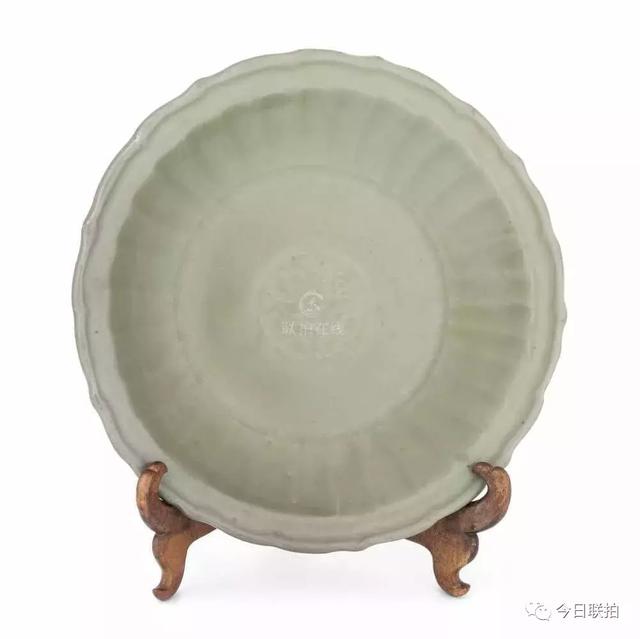 明 青釉葵口盘