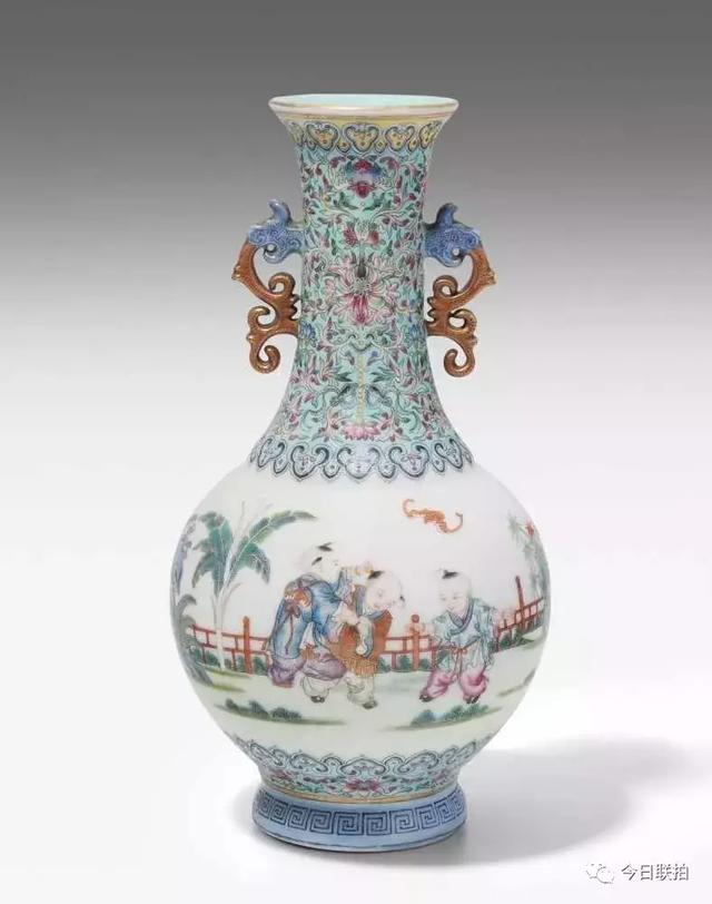 民国 粉彩婴戏图双耳瓶