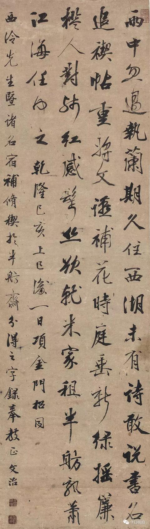款识:乾隆己亥上巳后一日,项金门招同西泠先生暨诸名宿补修稧于半舫斋,分得之字禄奉教正。文治。
