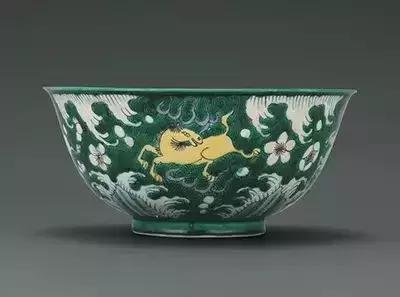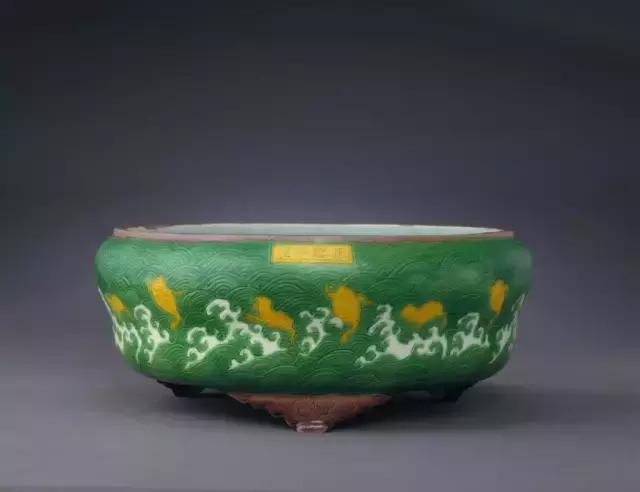 素三彩,瓷器釉彩名,在未上釉的素胎上,施以绿、黄、茄紫三色而烧成。始于明正德年间,清康熙时继续烧制。素三彩在陶瓷发展历史上并没有像青花瓷那样风行,如今也并非艺术品拍卖市场上的常见品,但是其特有的工艺特色,却深受一些藏家推崇。