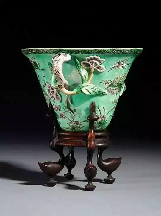 古书记载:“黑白等地而绘绿黄紫三色花者谓之素三彩,以黑地为贵。西人嗜此,声价极高,一瓶之值辄及万金,以怪兽为奇特,人物次之,若花鸟价亦不赀也。”有琉璃厂老人回忆,真品康熙素三彩大件在民国时期就已罕见,尤其是康熙黑地素三彩,即便是一件残口的大瓶,当时就可值1万大洋,足见其贵重。