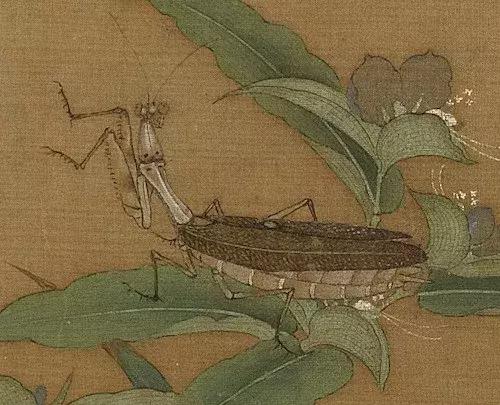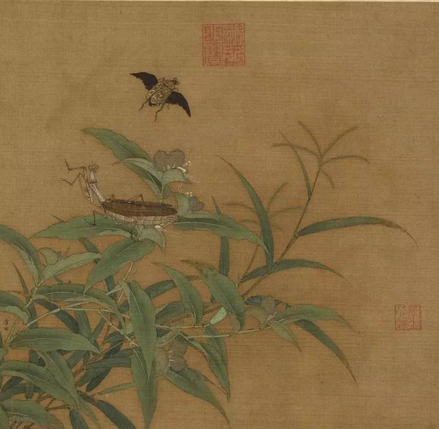 而画中细腻精致的色彩变换,以及花叶昆虫所散发的感官魅力,充分展现画家对于徽宗画院追求设色与质感兼具的风格传承。