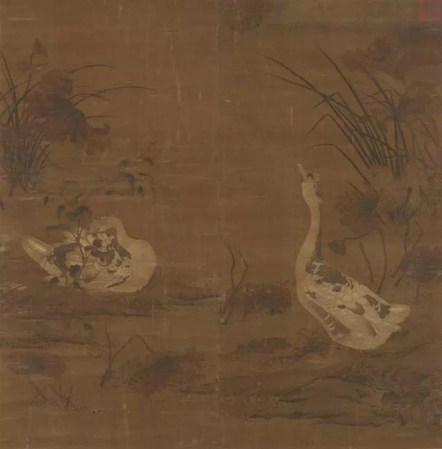 类此巨幅且优异的北宋花鸟画作并不多见,本幅应是徽宗朝画院秋渚水鸟题材的存世杰作。