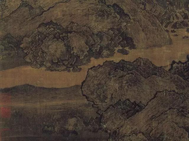 尤其是山石块面的分割,运用更多的皴染来经营质面,笔法与李唐相近,可视为〈万壑松风〉与〈江山小景〉之间的转折点。