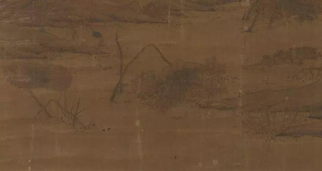 本幅画重山迭嶂、沙坡群树出现在画面的左上侧,山石轮廓浑圆,水墨淡染其间,缀以烟霭野水,呈现抒情诗意的山水意境。