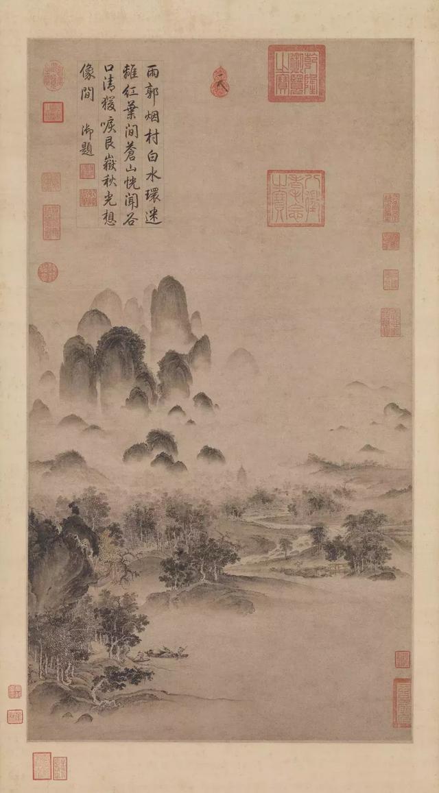 此作呈现南北宋之间,山水构图由主山堂堂的雄伟风格,转趋带有抒情气氛的南宋特征。通幅笔法细致,兼具李郭派笔墨与文人淡墨气韵,殊有重要艺术意涵。
