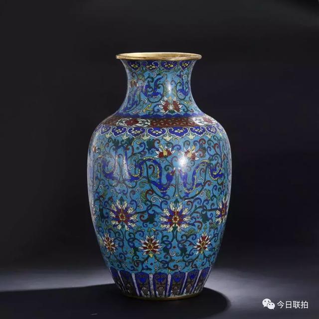 铜胎掐丝珐琅缠枝花卉纹灯笼瓶