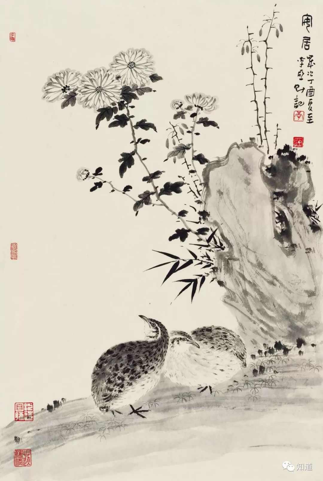 中国画的墨和色是相辅相成的关系,相互不抵触,不矛盾,但要正确把握处理两者的关系,非驾轻就熟的高手所不能为。李亚很好地解决把握了色墨两者之间的关系。他的画没有病态文人的无病呻吟,没有自怜自赏的闲花逸草,反而处处透出浓烈和蓬勃的朝气。尤其是他的花鸟画,总是带给人鲜活的美感,雨露滋润而百卉芬芳,曼妙灵动而跃然纸上。李亚篆籀之功深厚,他以书入画,中锋走笔,力透纸背,墨与色相映生辉,以至韵味无穷。