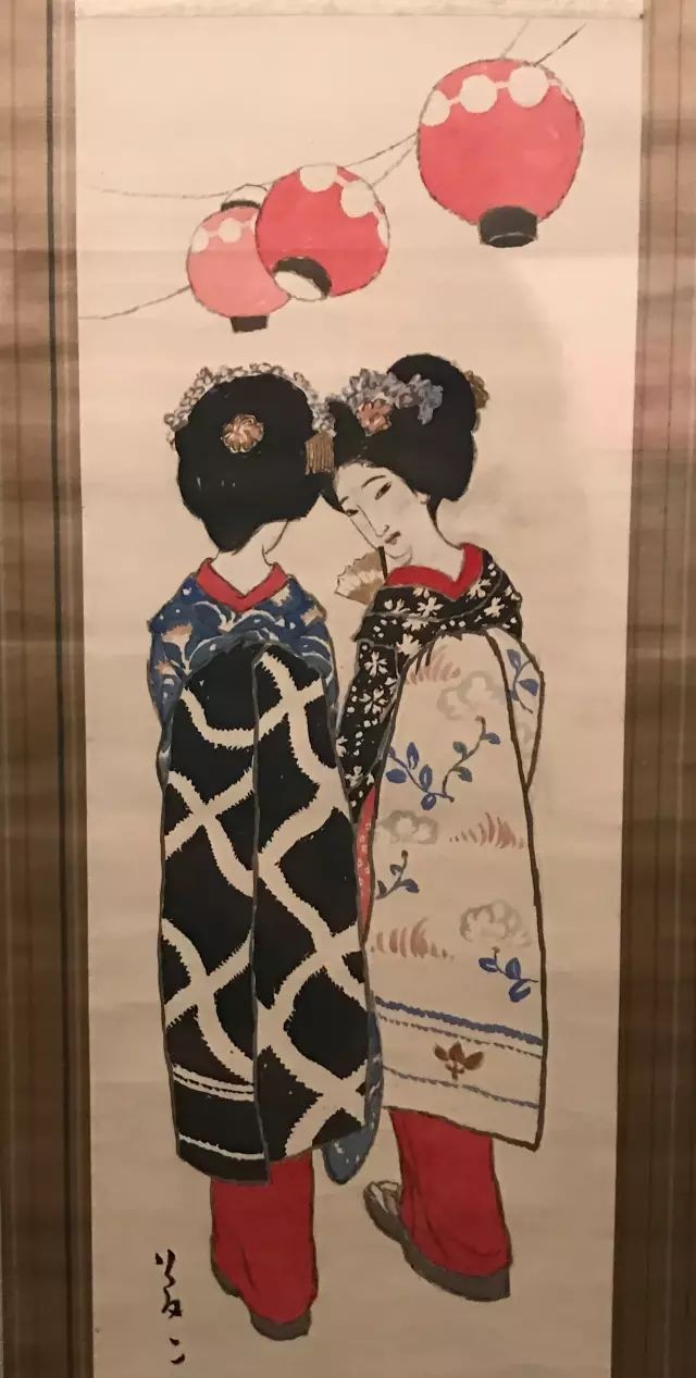 人们慢慢地走,轻轻地谈论,虽然我不懂日语,但是能感到那些先生太太们,都满面是赞赏和欢喜的神情,慢慢地踱过竹久梦二画里的春夏秋冬。