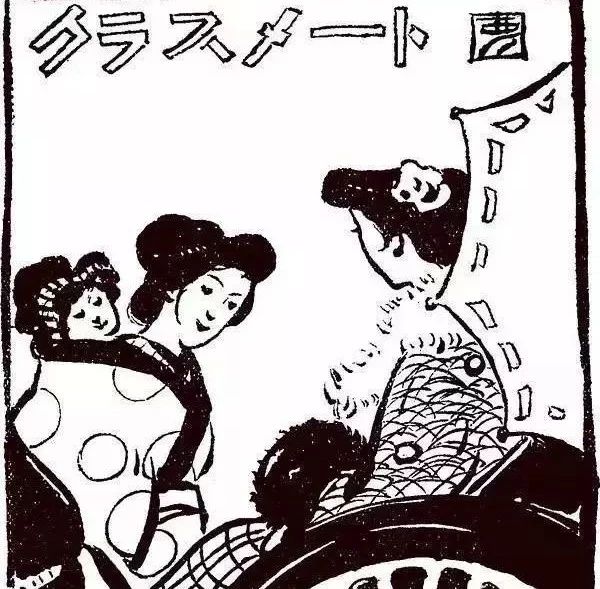 我当时便在旧书摊上出神。因为这页上寥寥数笔的画,使我痛切地感到社会的怪相与人世的悲哀。她们俩人曾在同一女学校的同一教室的窗下共数长年的晨夕,亲近地、平等地做过长年的“同级生”。但出校而各自嫁人之后,就因了社会上的所谓贫富贵贱的阶级,而变成这幅画里所显示的不平等与疏远了!人类的运命,尤其是女人的运命,真是可悲哀的!人类社会的组织,真是可诅咒的!这寥寥数笔的一幅画,不仅以造型的美感动我的眼,又以诗的意味感动我的心。