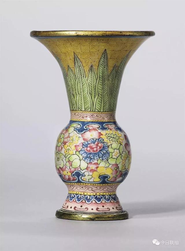 清乾隆 铜胎画珐瑯万花锦纹觚式小瓶