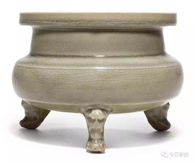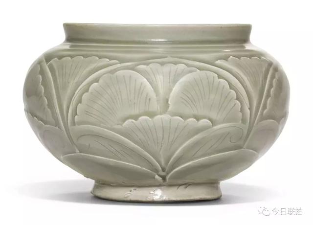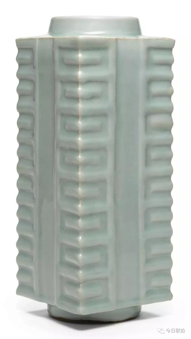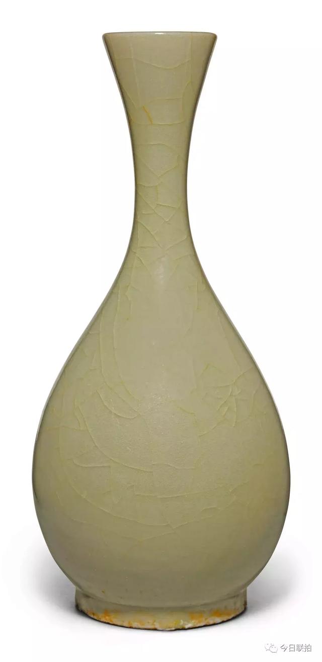 其中,一件金 耀州窑青釉胆瓶拍得789,000英镑,为全场最高价拍品。该瓶器形修长柔美,釉色素雅,于耀州窑中实为罕见。瓶身无纹饰,亭亭玉立,彰显冰裂莹澈。